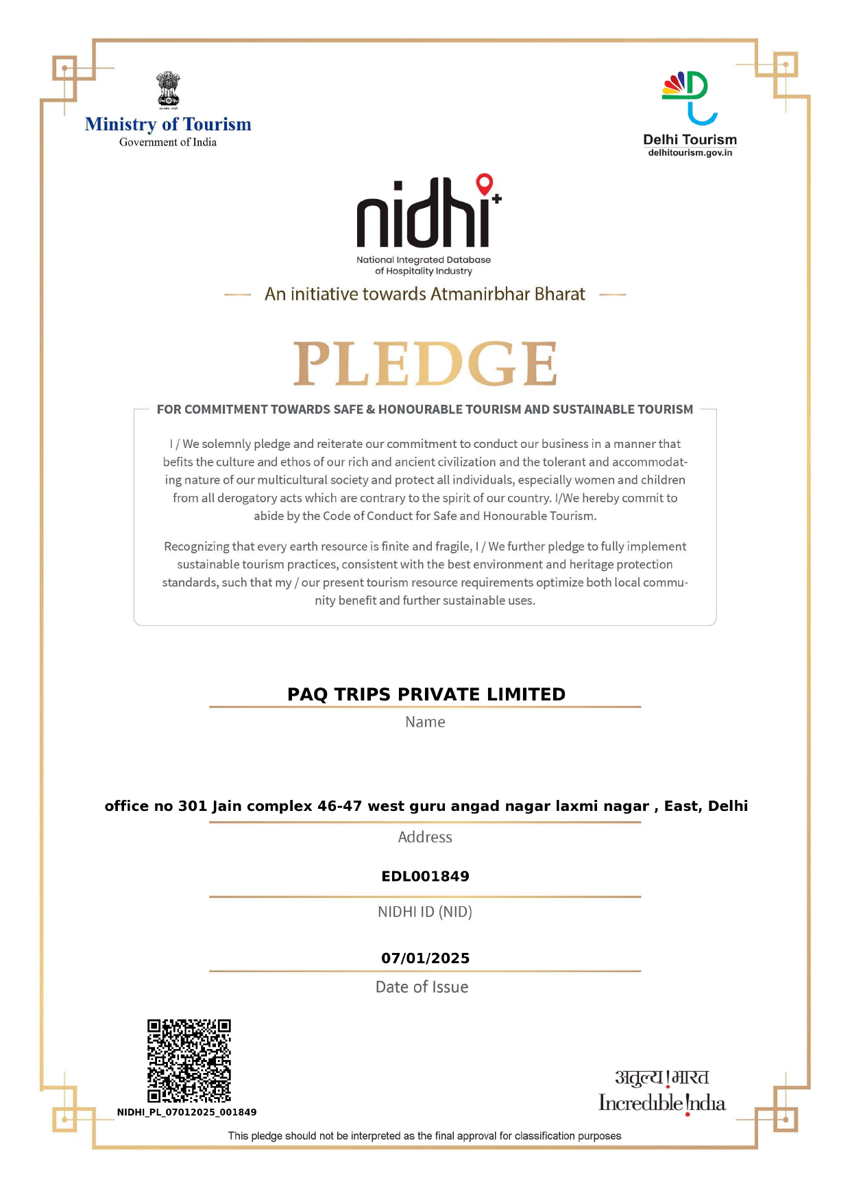 PAQ Trips is proud to be associated with the Ministry of Tourism, Government of India, reflecting our commitment to promoting responsible, transparent, and quality travel experiences across India.