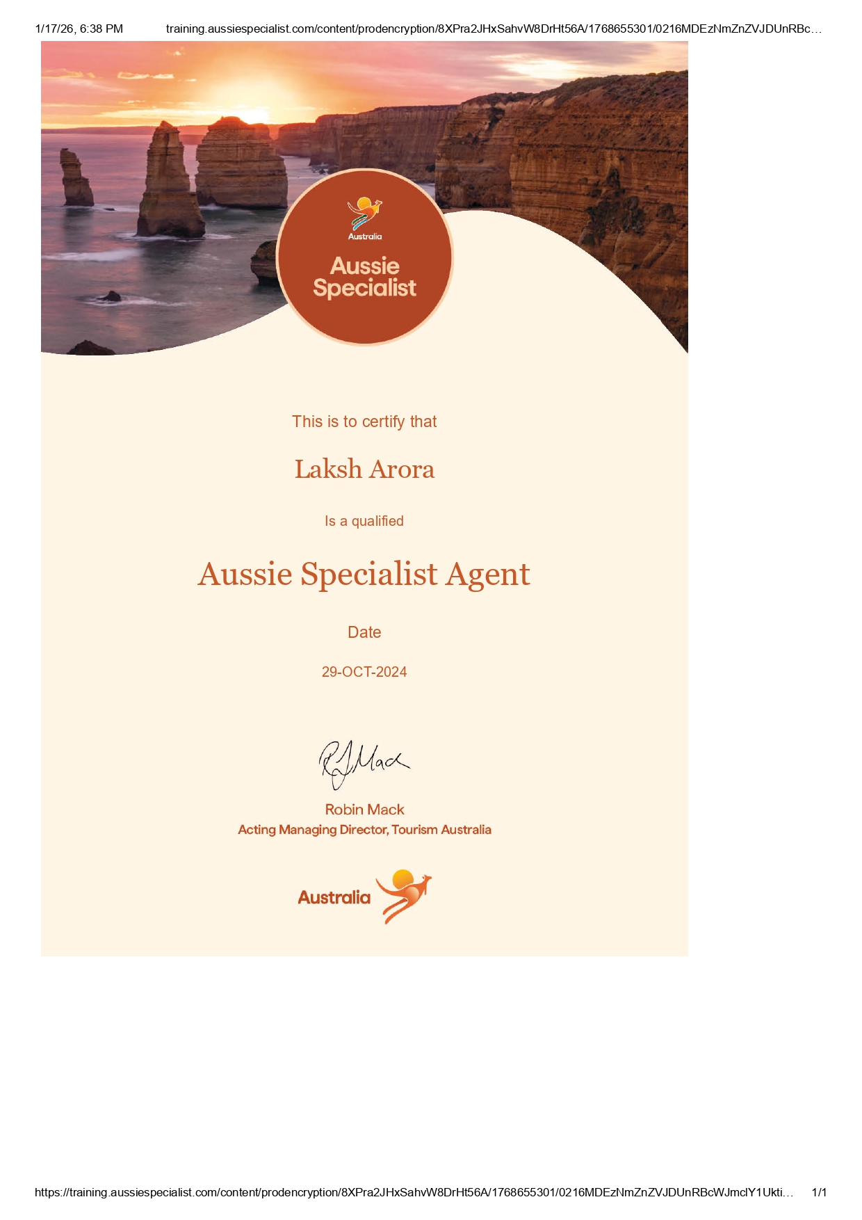? Certified By: Tourism Australia